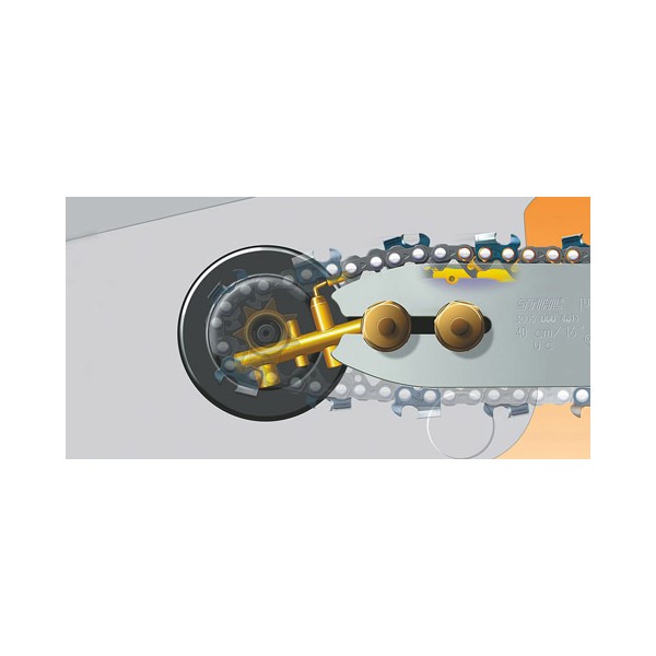 Νέο ηλεκτρικό αλυσοπρίονο με βελτιωμένη απόδοση κοπής. Πολύ καλή εργονομία για ξεκούραστη εργασία, φρένο αλυσίδας QuickStop Super, ταχυτεντωτήρα αλυσίδας, μαλακή λαβή για καλό κράτημα και ευχάριστη εργασία, τάπα δοχείου λαδιού που ανοιγοκλείνει χωρίς εργαλεία για απλό και ασφαλή ανεφοδιασμό με λάδι αλυσίδας, ασφάλεια υπερφόρτωσης.
